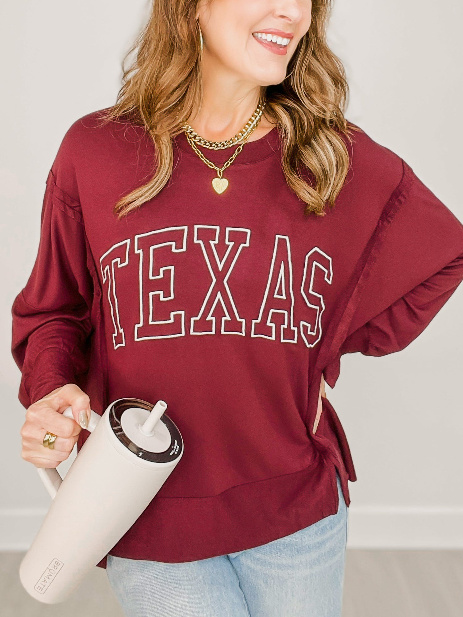 Celebrate your Lone Star pride in cozy style with this Long Sleeve French Terry TEXAS Sweatshirt. Crafted from soft, breathable fabric, it’s perfect for chilly days when you want to stay comfortable and showcase your Texas spirit. Whether you’re out exploring or lounging at home, this sweatshirt adds a playful touch to your wardrobe with its relaxed fit and classic design. Embrace warmth and fun all at once!