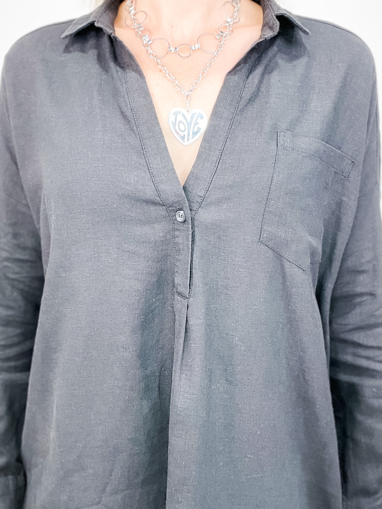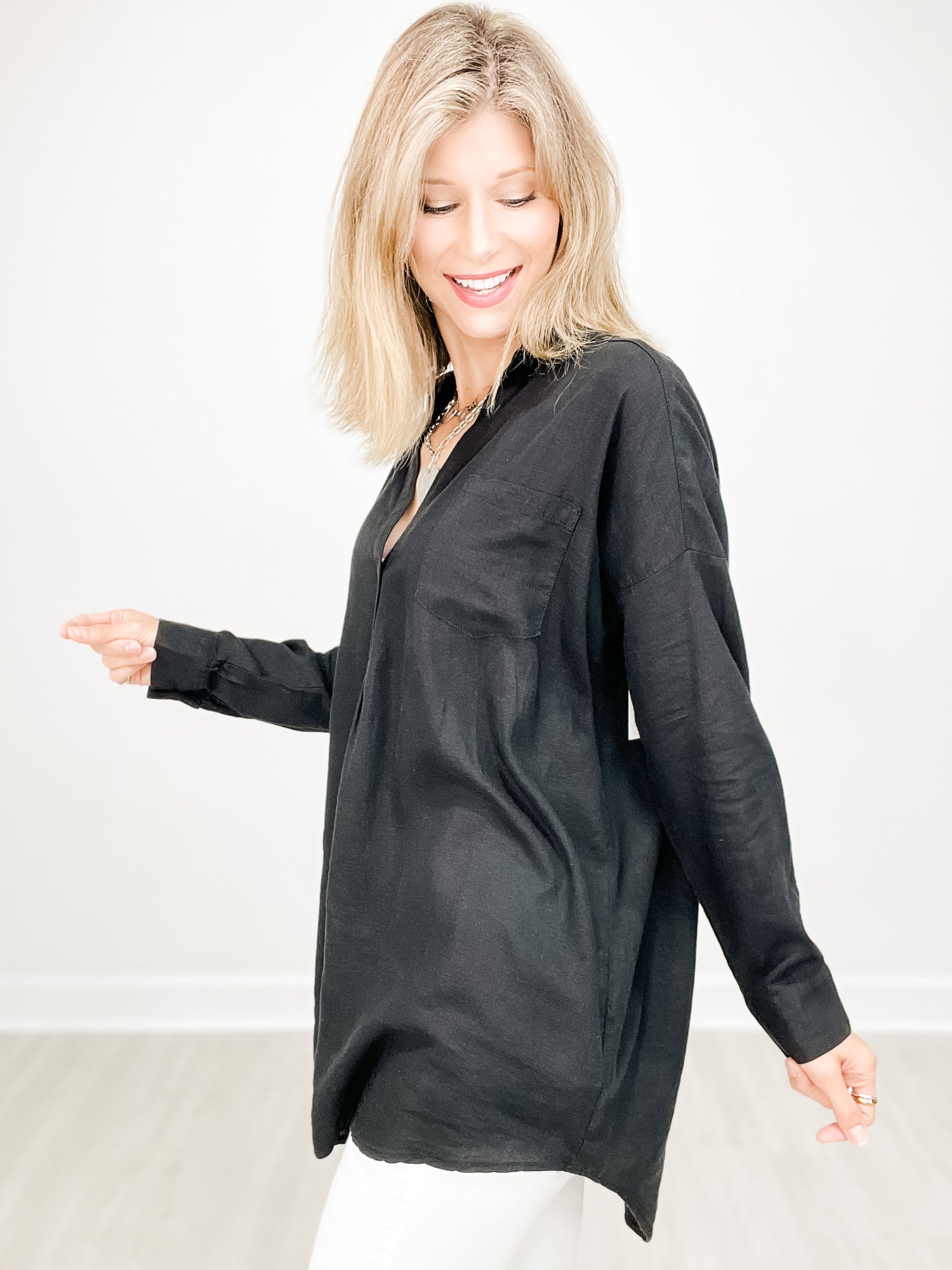 Long Sleeve Oversized Popover Linen Top