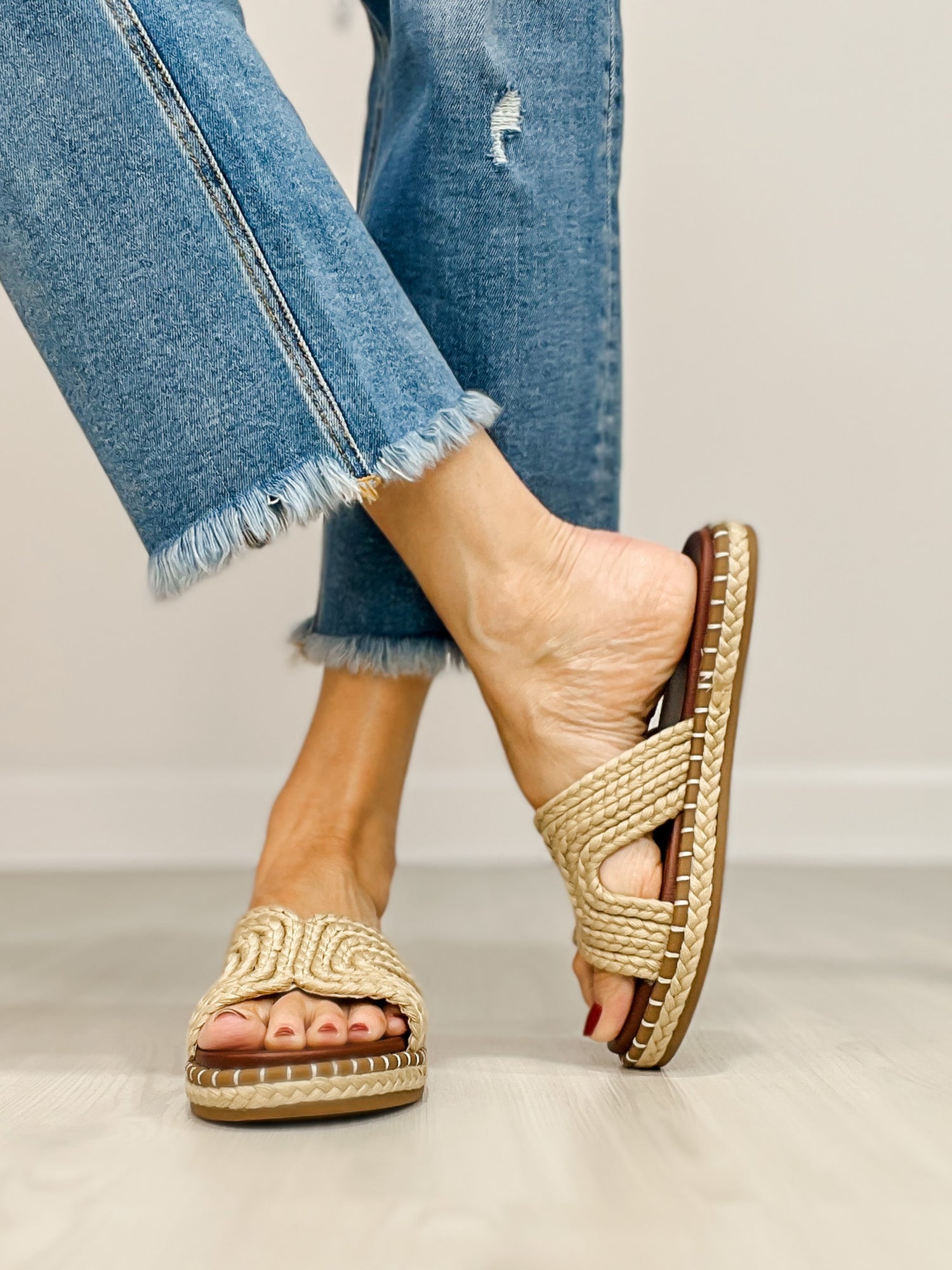 Braided straps amplify the earthy vibes of this summery slide sandal set on a contoured footbed for everyday comfort.