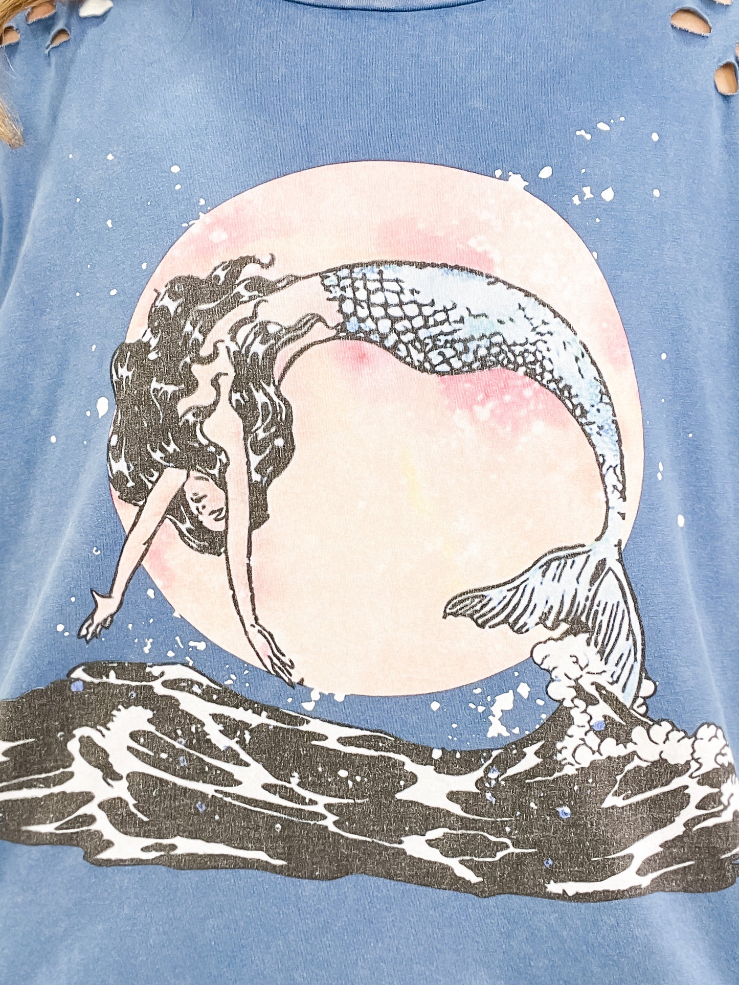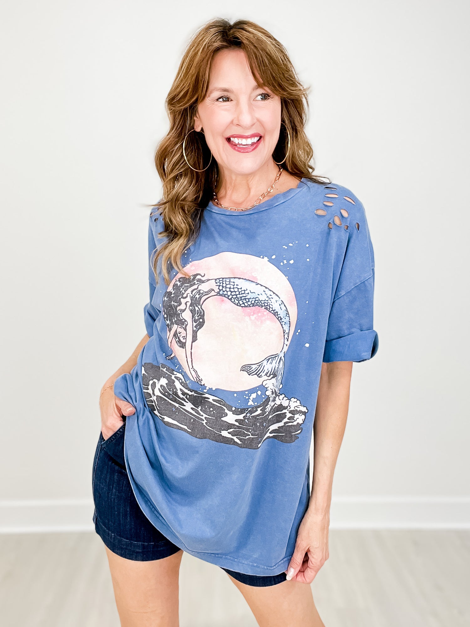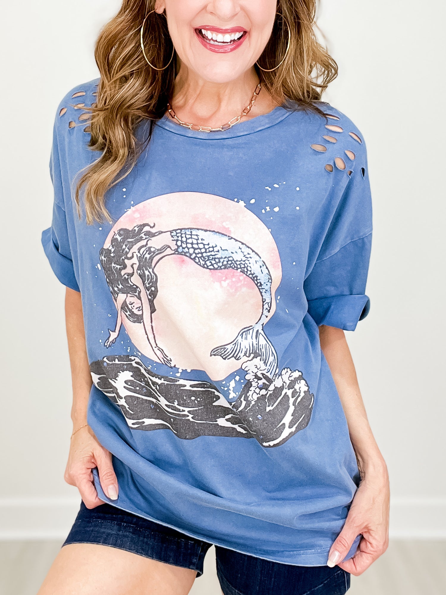 Mineral Washed Short Sleeve Mermaid Screen Print Top