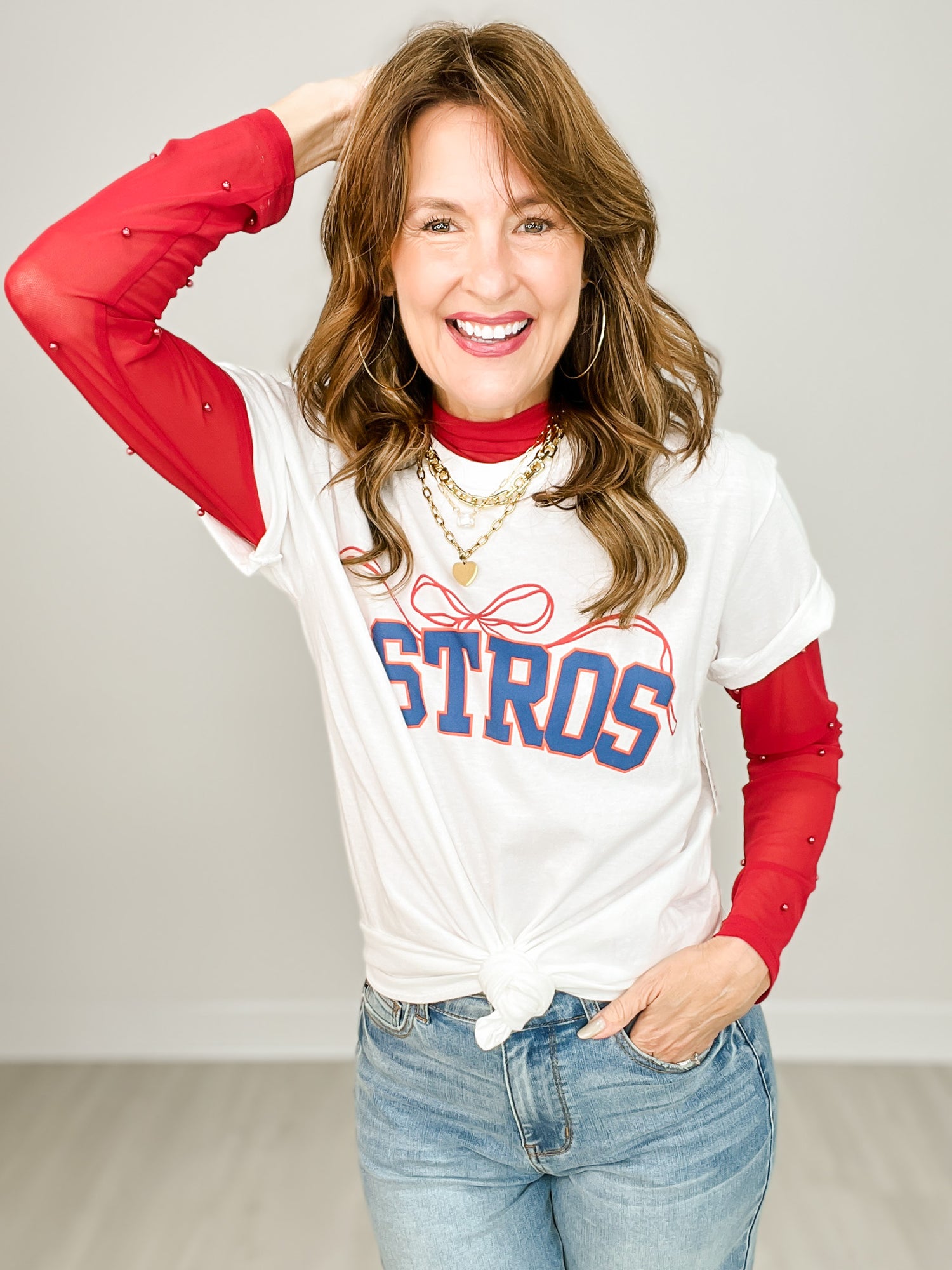 Elevate your style with this playful Mock Neck Mesh Top featuring delicate pearl details. The sheer mesh fabric adds a flirty touch, while the pearls bring a hint of elegance. Perfect for layering or wearing solo, it’s a fun way to sparkle day or night.