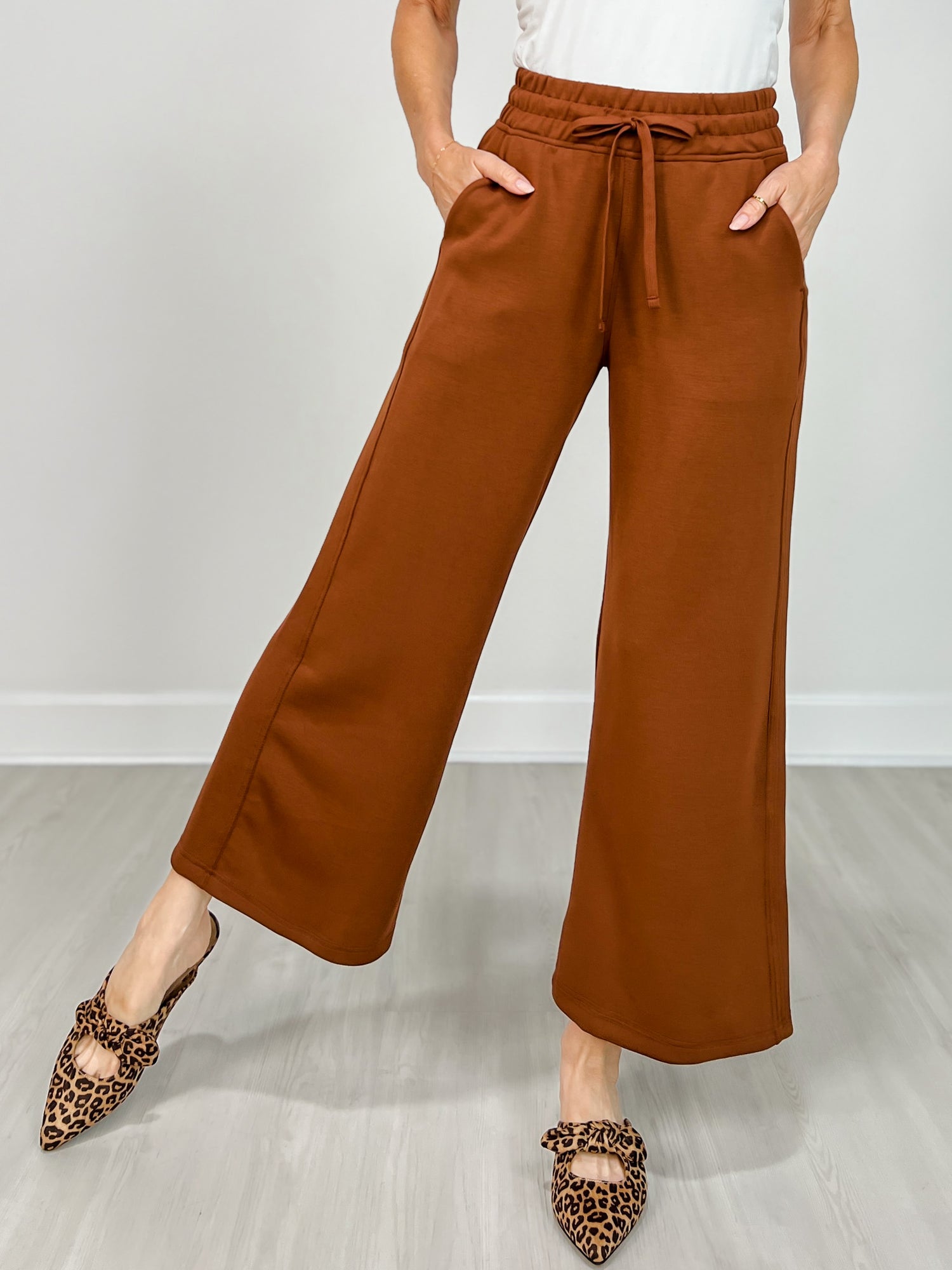Step into comfort and style with the Modal Scuba Cropped Wide Pant. These pants blend a soft, stretchy modal fabric with a chic wide-leg cut, perfect for a relaxed yet fashion-forward look. The cropped length adds a playful twist, making them easy to pair with your favorite sneakers or sandals. Ideal for days when you want to feel cozy without sacrificing flair.