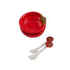 4-piece set. Two hand-painted ceramic figural tidbit plates come with two acrylic spoons.