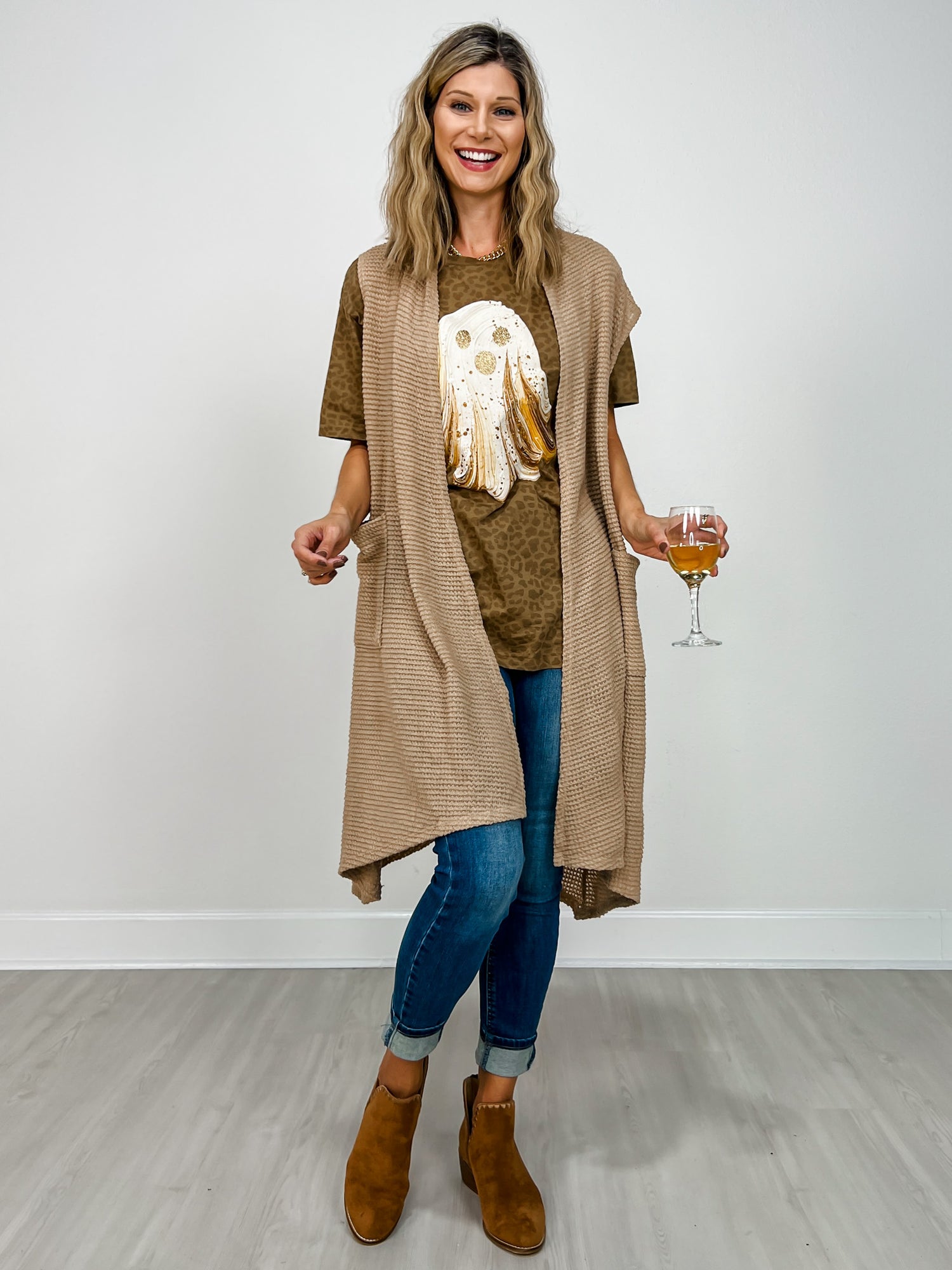 Layer on effortless style with this long knit vest. Designed with an open-front silhouette, it features a relaxed drape, wide armholes, and front patch pockets for a touch of practicality. Perfect for pairing with blouses, tees, or lightweight sweaters, this versatile vest adds depth and polish to any outfit. Whether dressed up with trousers or kept casual with jeans, it’s a chic layering piece you’ll reach for year-round.