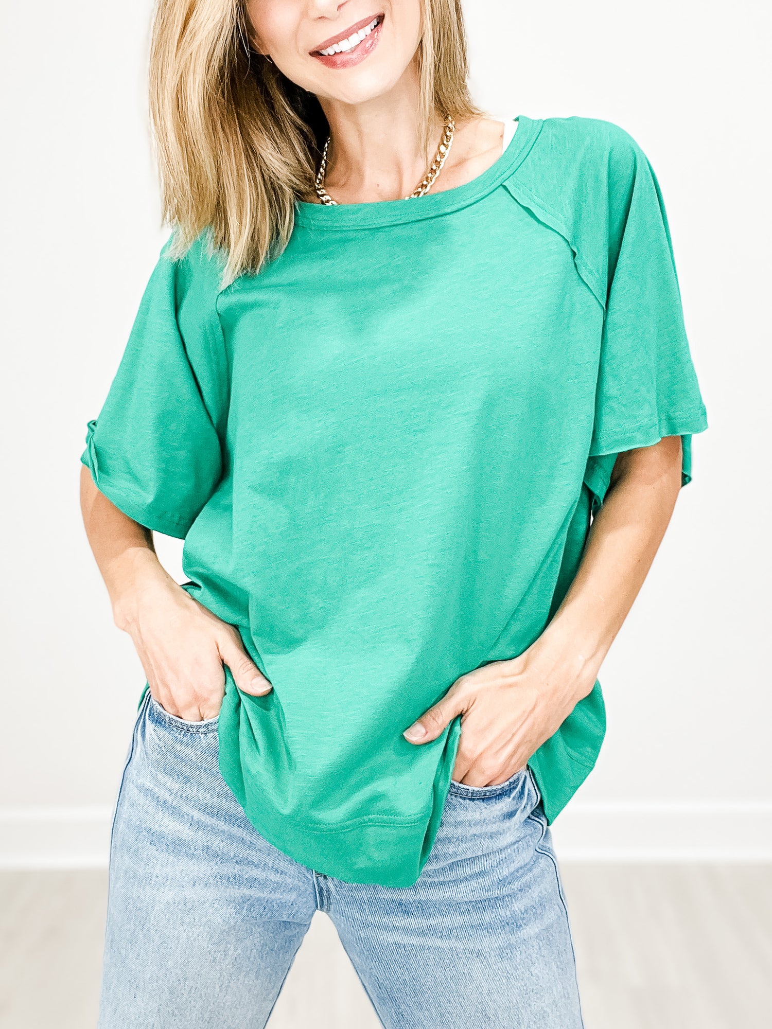 Oversized Cotton Slub Short Sleeve Top GRP A
