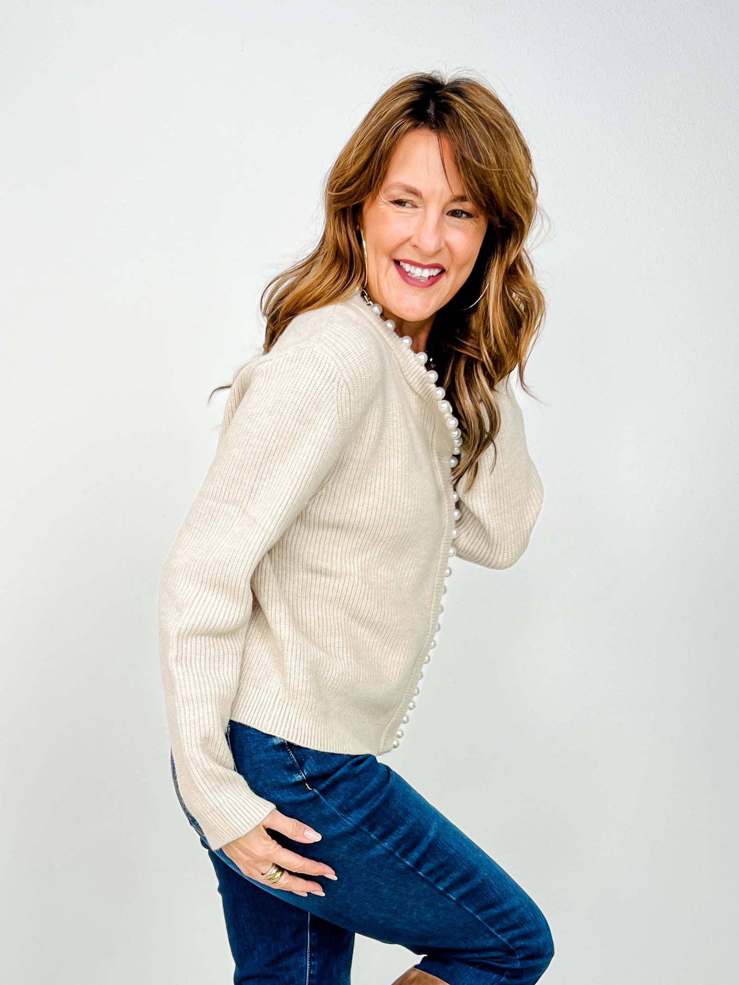Add a touch of elegance to your cozy wardrobe with this Pearl-Lined Neckline Button-down Knit Cardigan. Soft and snug, it features delicate pearl details along the neckline, making every button-up moment feel special. Perfect for layering, this cardigan brings charm and comfort to your day, giving you style that’s as playful as it is polished.