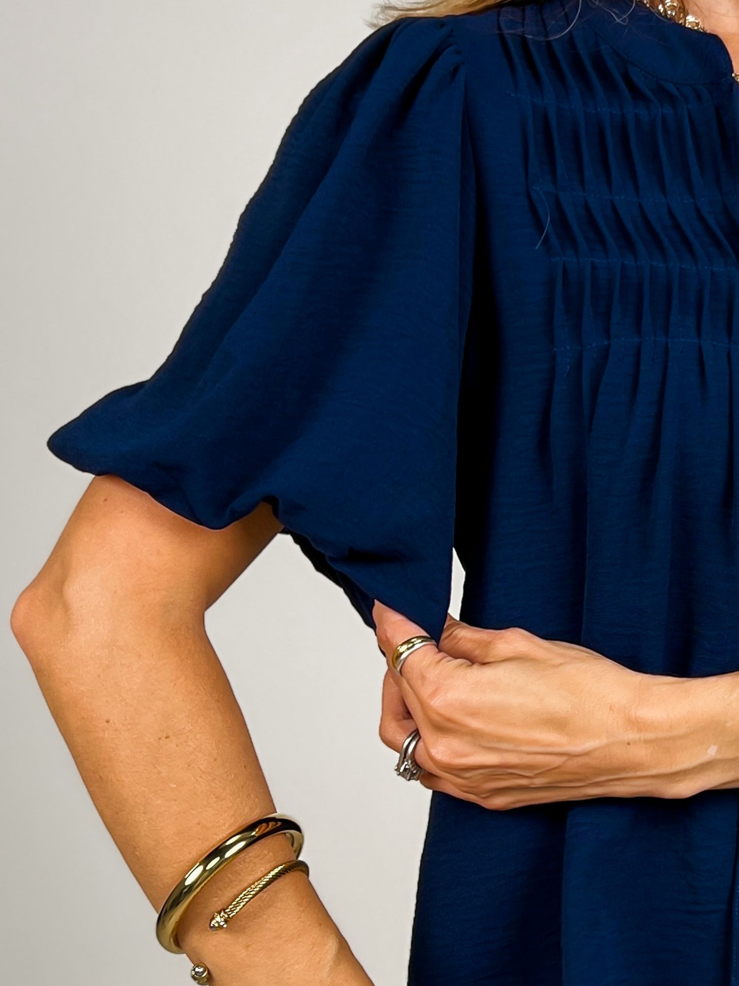 Puff Sleeve Woven Pintuck Detail with Neck Tie Top