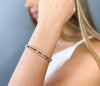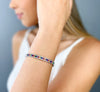Beautiful, colorful stone bangle bracelet lined by clear pave CZ.