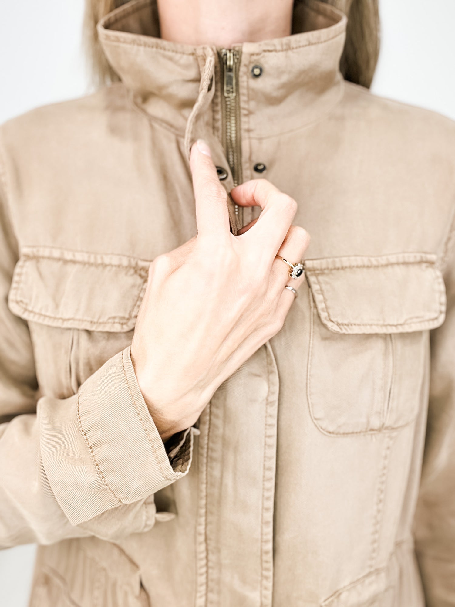 Risen Tencel Anorak Zip-Up Jacket with Tie Waist