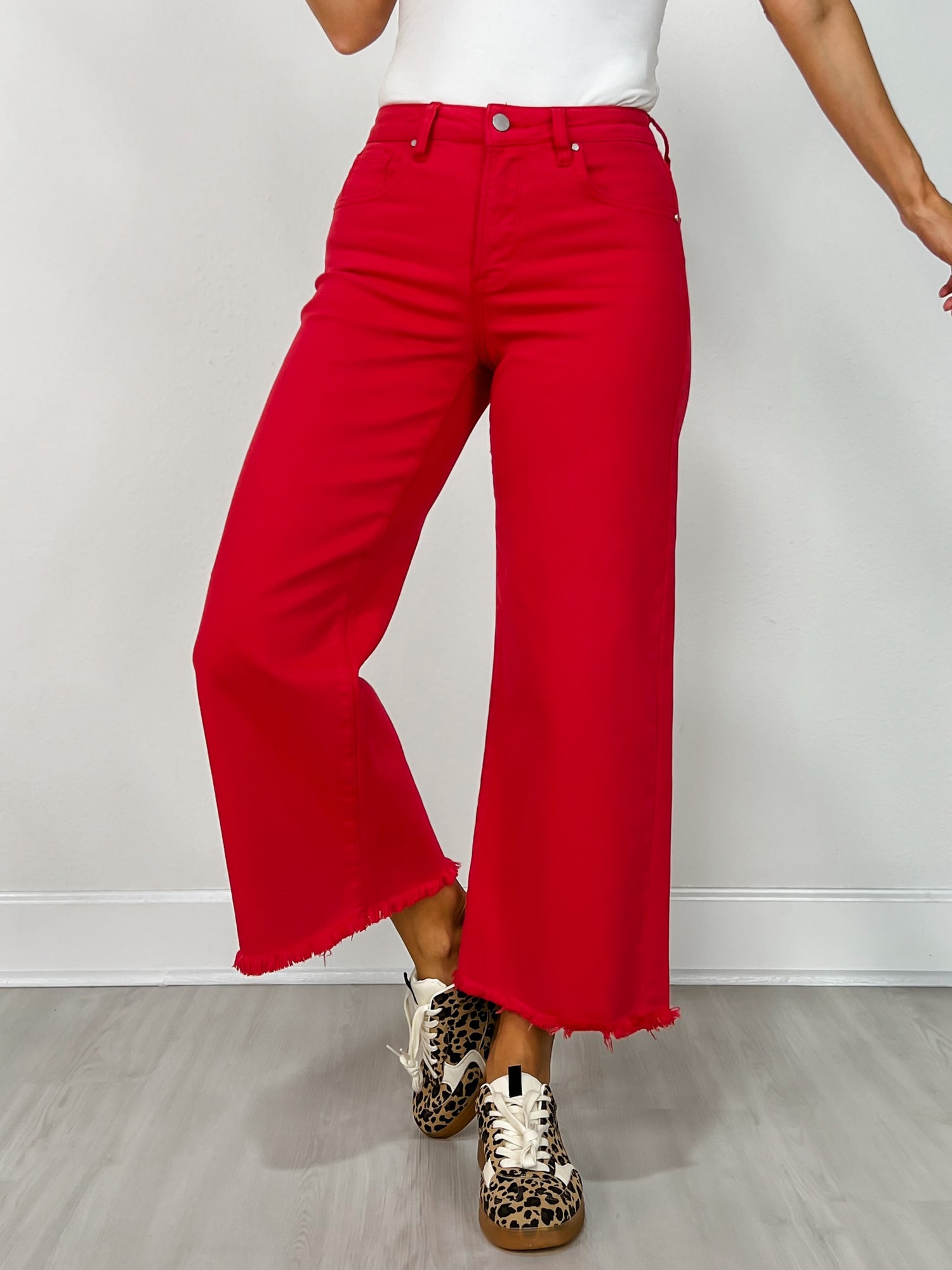 Risen Tummy Control High-Rise Crop Wide Leg Pants in Scarlet