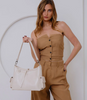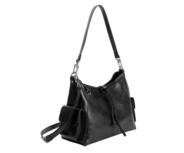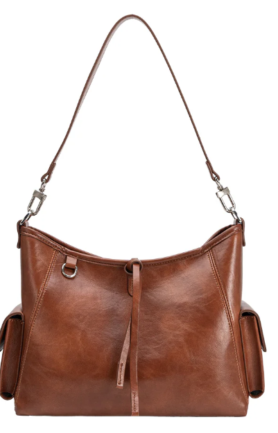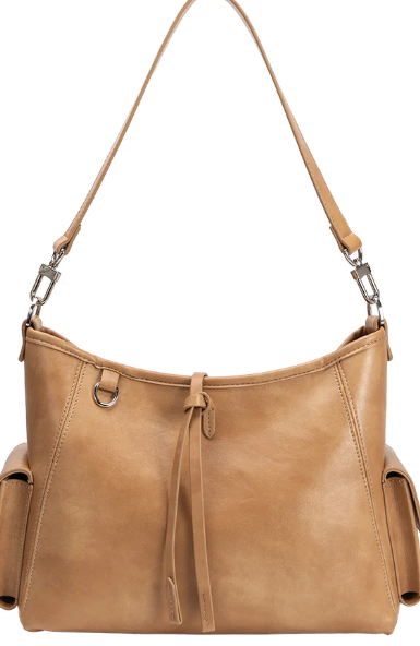 With its adjustable and detachable straps, the Rory, easily converts from a shoulder bag to a stylish crossbody. The exterior features two handy flap pockets for easy access to your essentials, while the additional string closure adds extra security. Use the D ring to attach your favorite bag charm.
