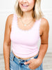 Don't settle for essential tanks! Our Seamless Lace Scoop Neck Tank Top is here to add some fun to your wardrobe. With its seamless design and lace detailing, it's the perfect mix of comfort and style. Say goodbye to boring tanks, and hello to this playful addition!