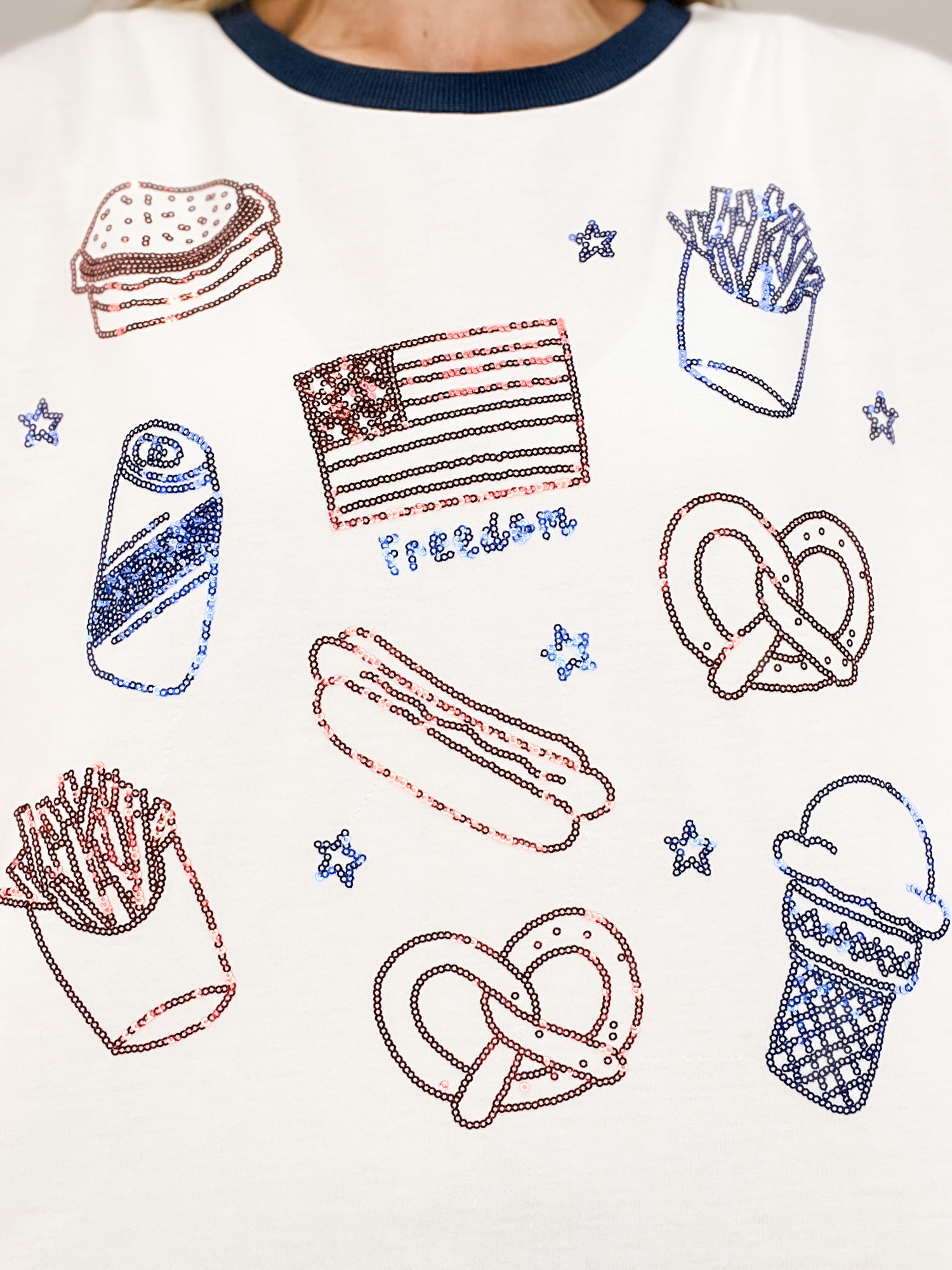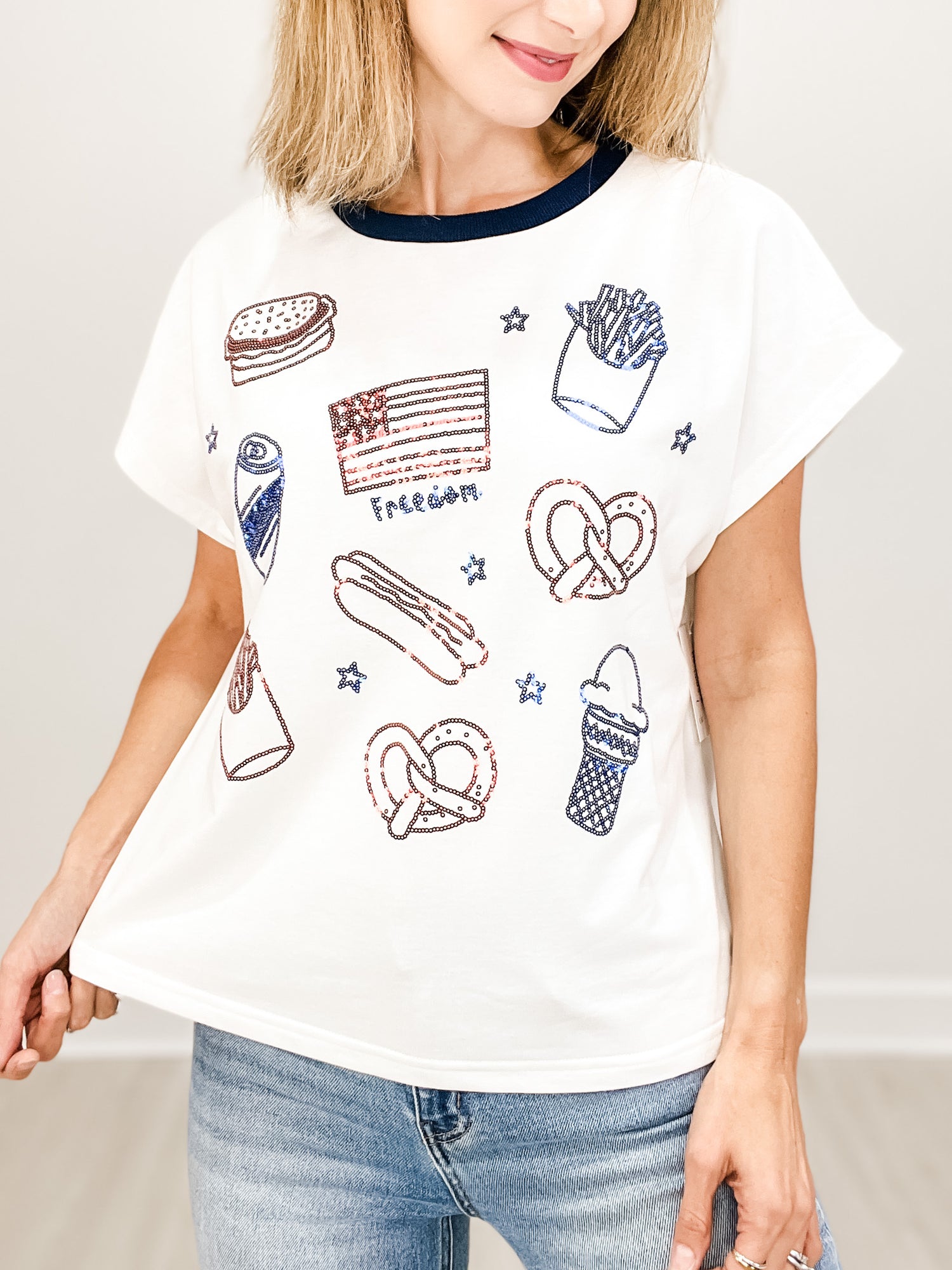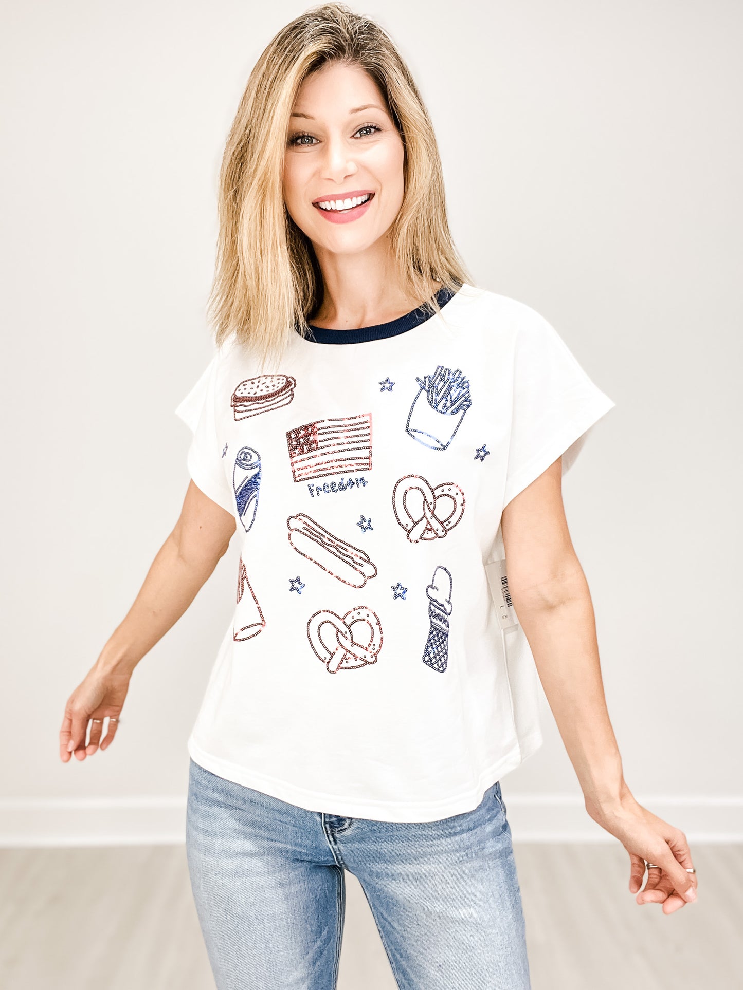 Introducing our "Freedom" Embroidered Top, the perfect addition to your wardrobe! With short sleeves and intricate embroidery, this top is both stylish and comfortable. Show off your patriotism while staying cool and comfortable. Perfect for casual outings or dress it up for a more formal occasion.