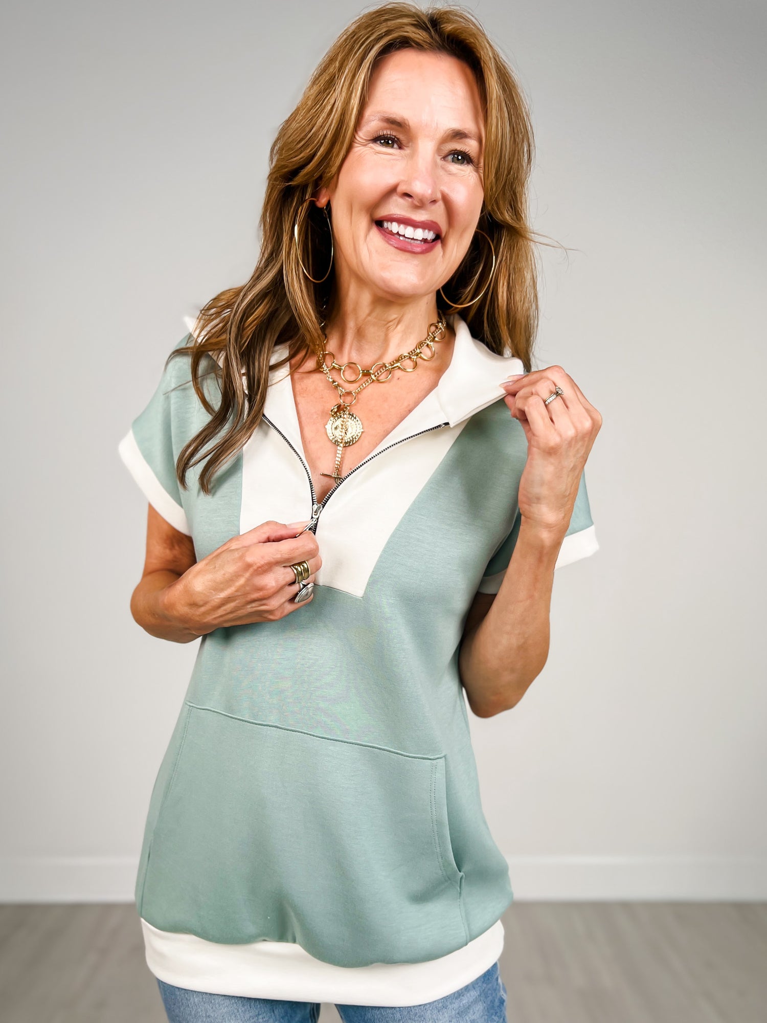 Short Sleeve Modal Zip Up Top