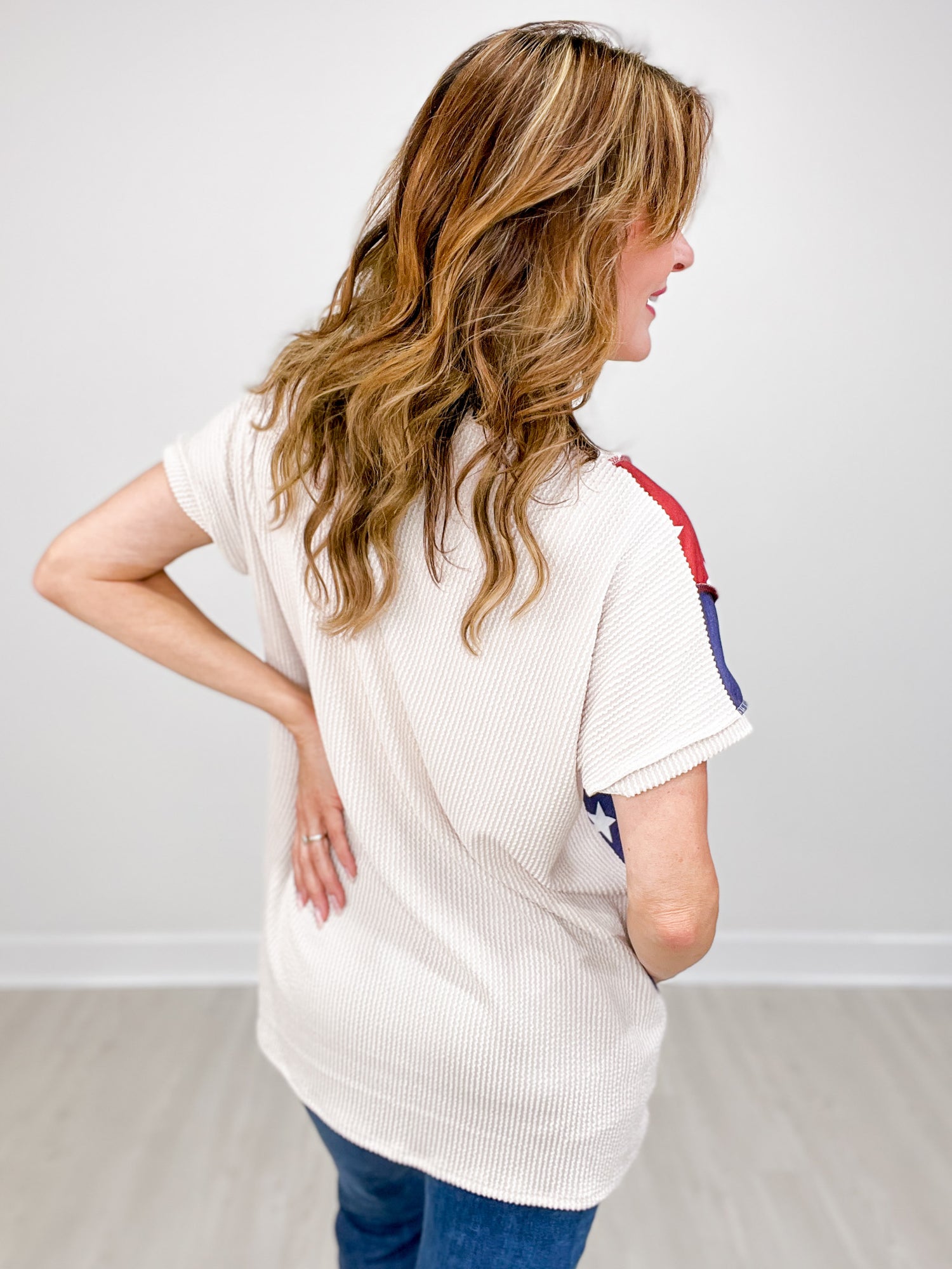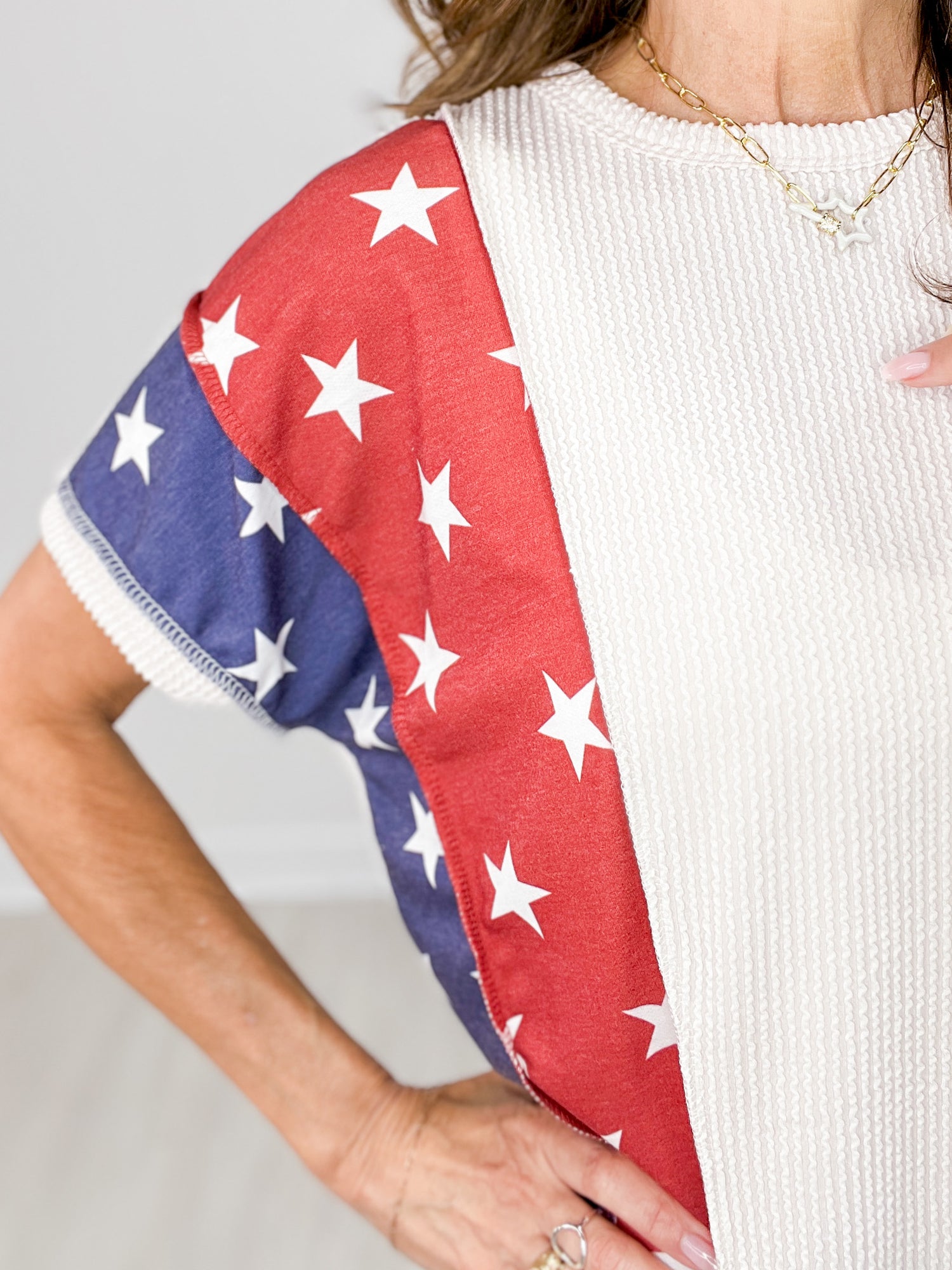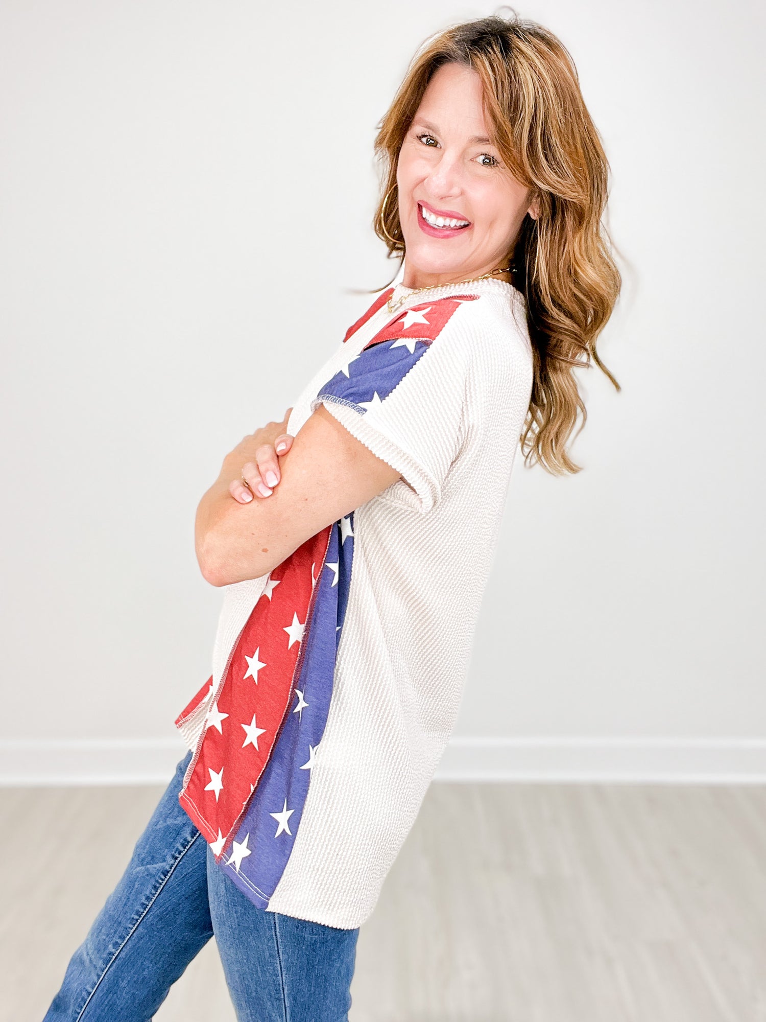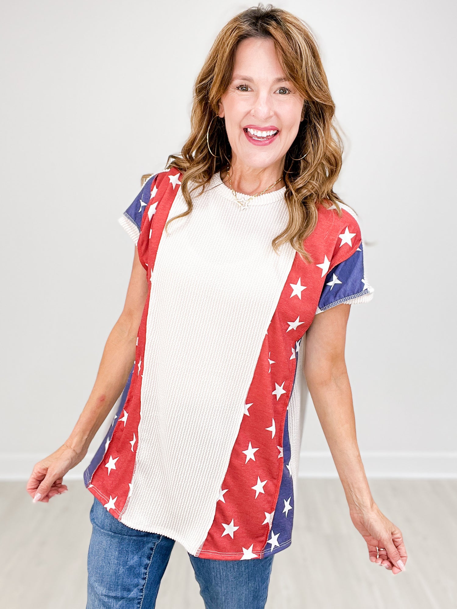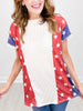 Short Sleeve Ribbed Stars and Stripes Contrast Top