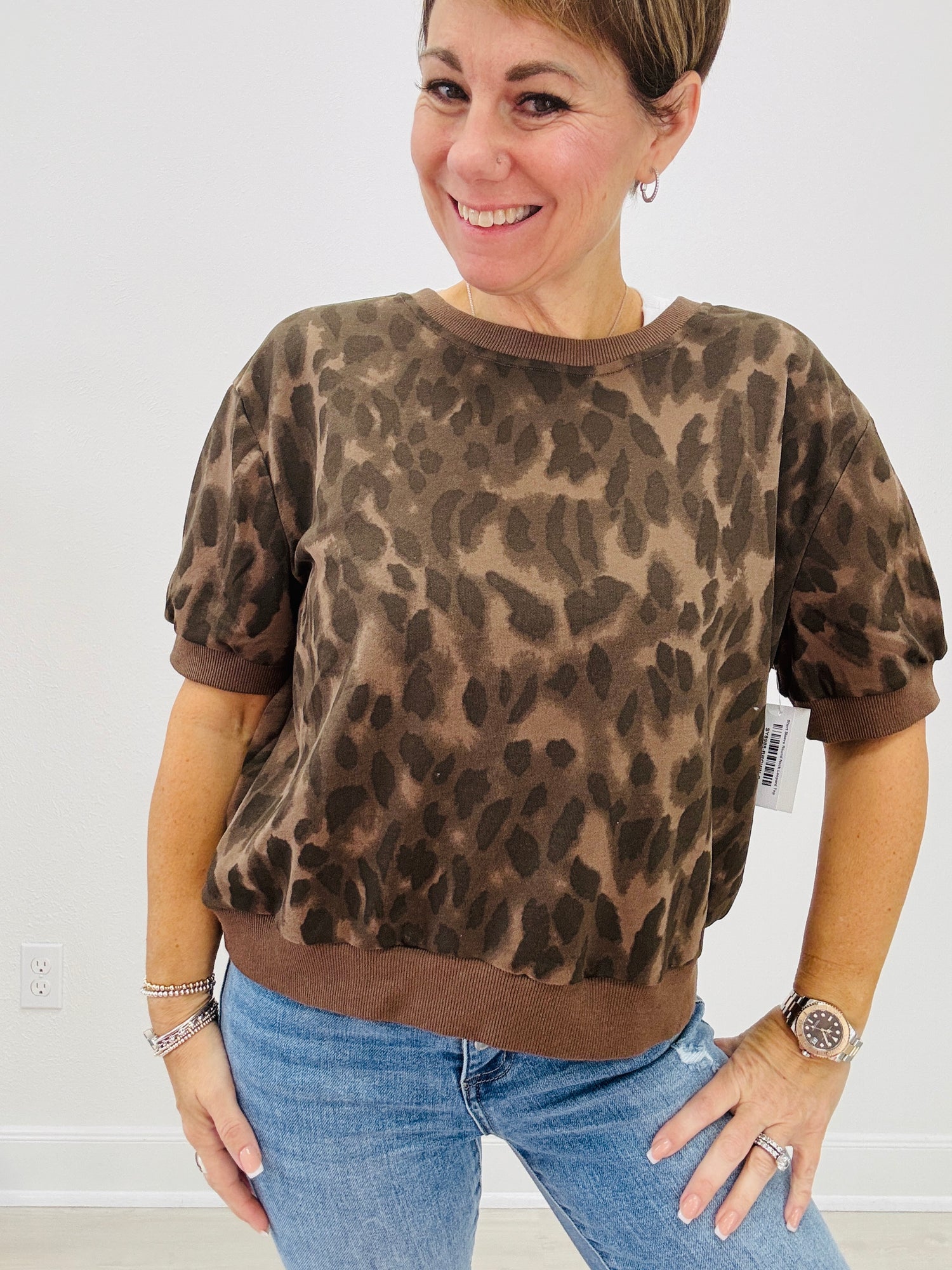 Add a wild touch to your wardrobe with this playful short sleeve leopard top. Featuring a comfy round neck and a bold print, it’s perfect for turning heads while keeping things casual and fun. Pair it with your favorite jeans or skirt for an effortlessly chic look.