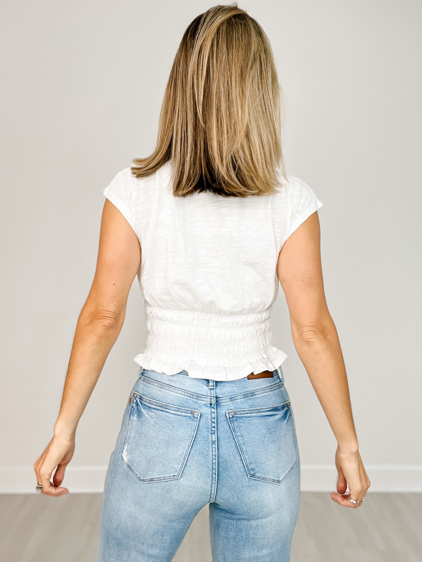 This sleeveless top features charming smocking detail that adds a playful touch to your look. Perfect for warm days, its lightweight design keeps you cool while the fitted smocked bodice offers a flattering silhouette. Pair it with your favorite jeans or skirt for an effortlessly fun and flirty outfit.