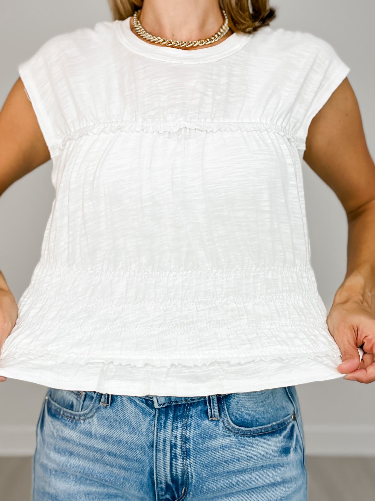 Sleeveless Top with Smocking Detail