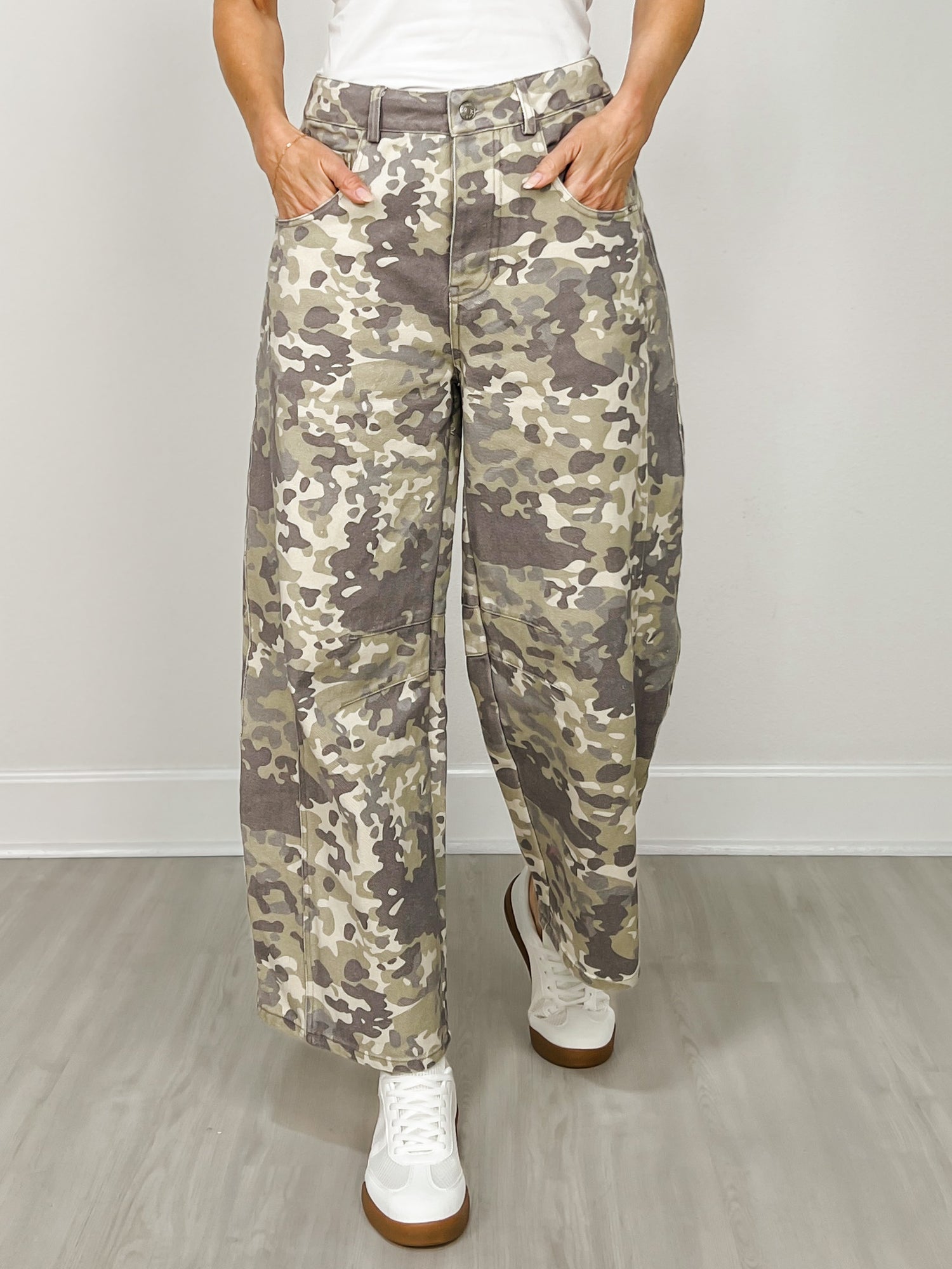 Get ready to turn heads in these Soft Washed Camo Barrel Pants! With their comfy, worn-in feel and playful camo pattern, they’re perfect for lounging or making a stylish statement. The relaxed barrel fit lets you move freely while staying effortlessly cool all day long. Whether you’re out exploring or chilling at home, these pants bring fun and comfort together in one perfect package.