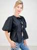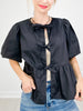 Solid Cotton Poplin Front Tie Ribbon Blouse
