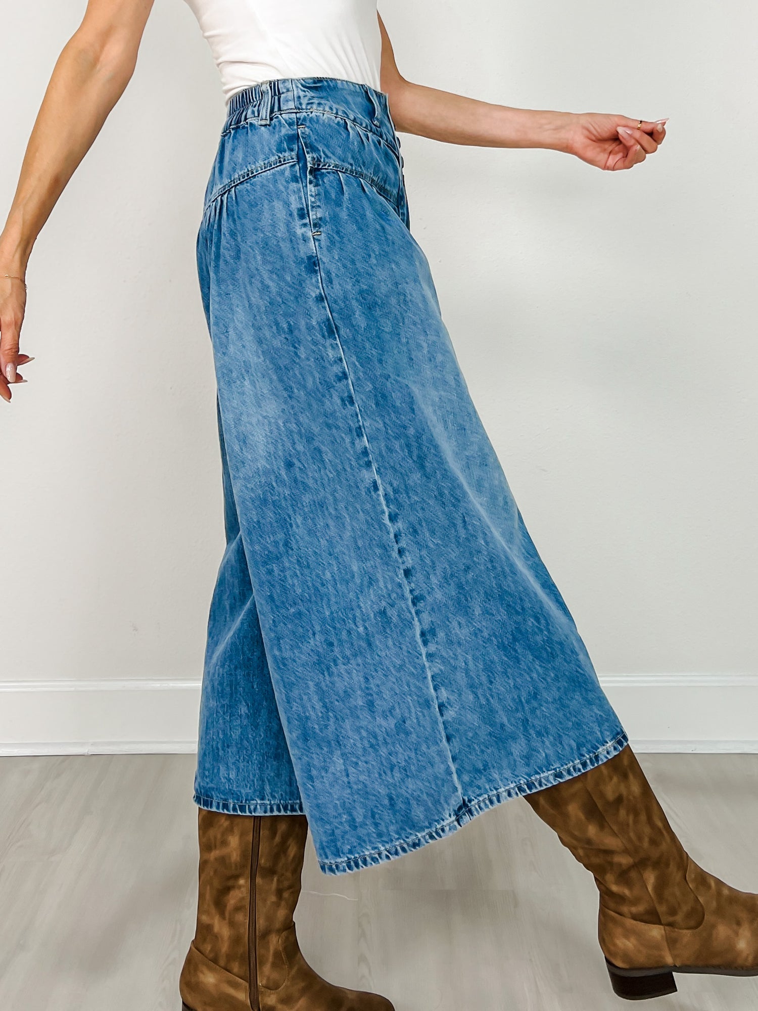 Step into effortless cool with these Stone Washed Cropped Denim Culottes. Their relaxed fit and cropped length keep your look breezy and fun, while the soft stone wash adds vintage charm. Perfect for pairing with your favorite sneakers or sandals, these culottes bring a playful twist to your everyday wardrobe.