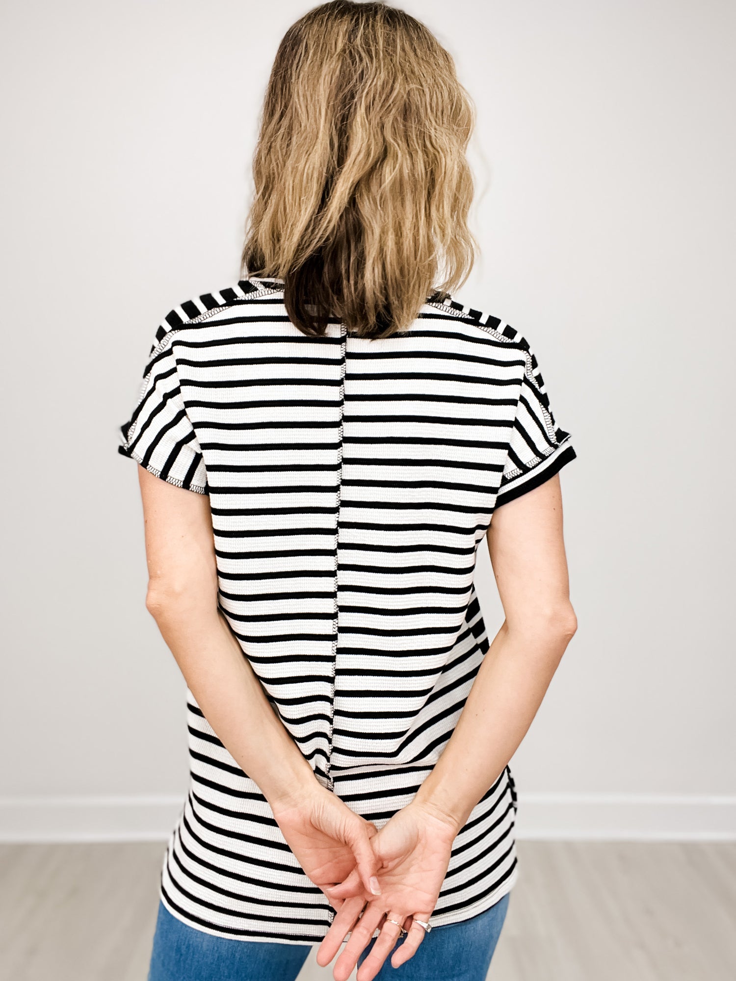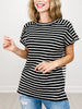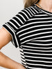 Stripe Contrast Drop Shoulder Short Sleeve Top