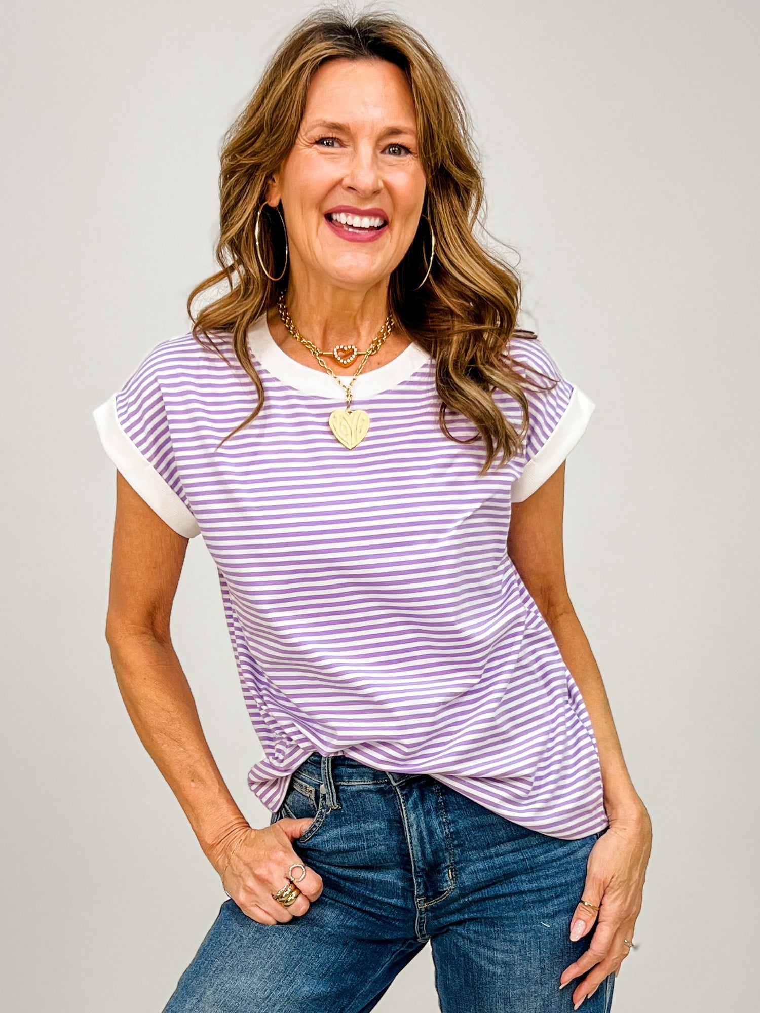 Stripe Contrast Trim Top with Round Neckline GRP B