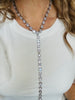 White Gold plating, 12mm Crystal Lariat Style Necklace with Large Pear Shaped Crystal on End