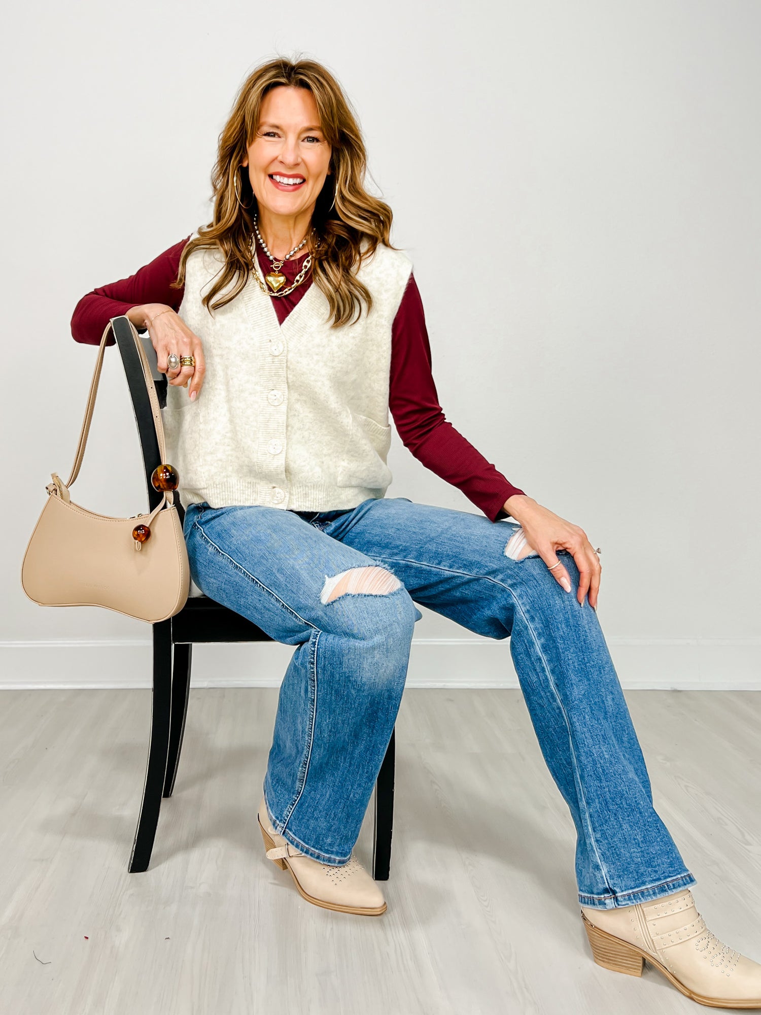 Add a cozy twist to your wardrobe with this Textured Button Up Knit Sweater Vest! Its charming textured knit and easy button-up front make layering fun and effortless. Perfect for pairing over your favorite tees or dresses, this vest adds a playful pop of warmth and style to any outfit. Embrace comfort and cuteness at the same time!