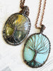 Turquoise or Labradorite Gemstone Wire Wrap Tree of Life Charm on Copper Chain