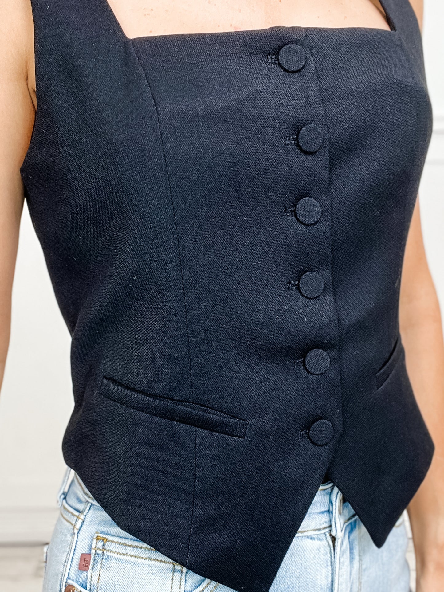 Get ready to turn heads with our Unbelievable Sight Square Neck Button Vest Top! This unique top features a square neckline and button detailing for a touch of vintage charm. You won't believe how versatile and stylish this top is - perfect for any occasion!