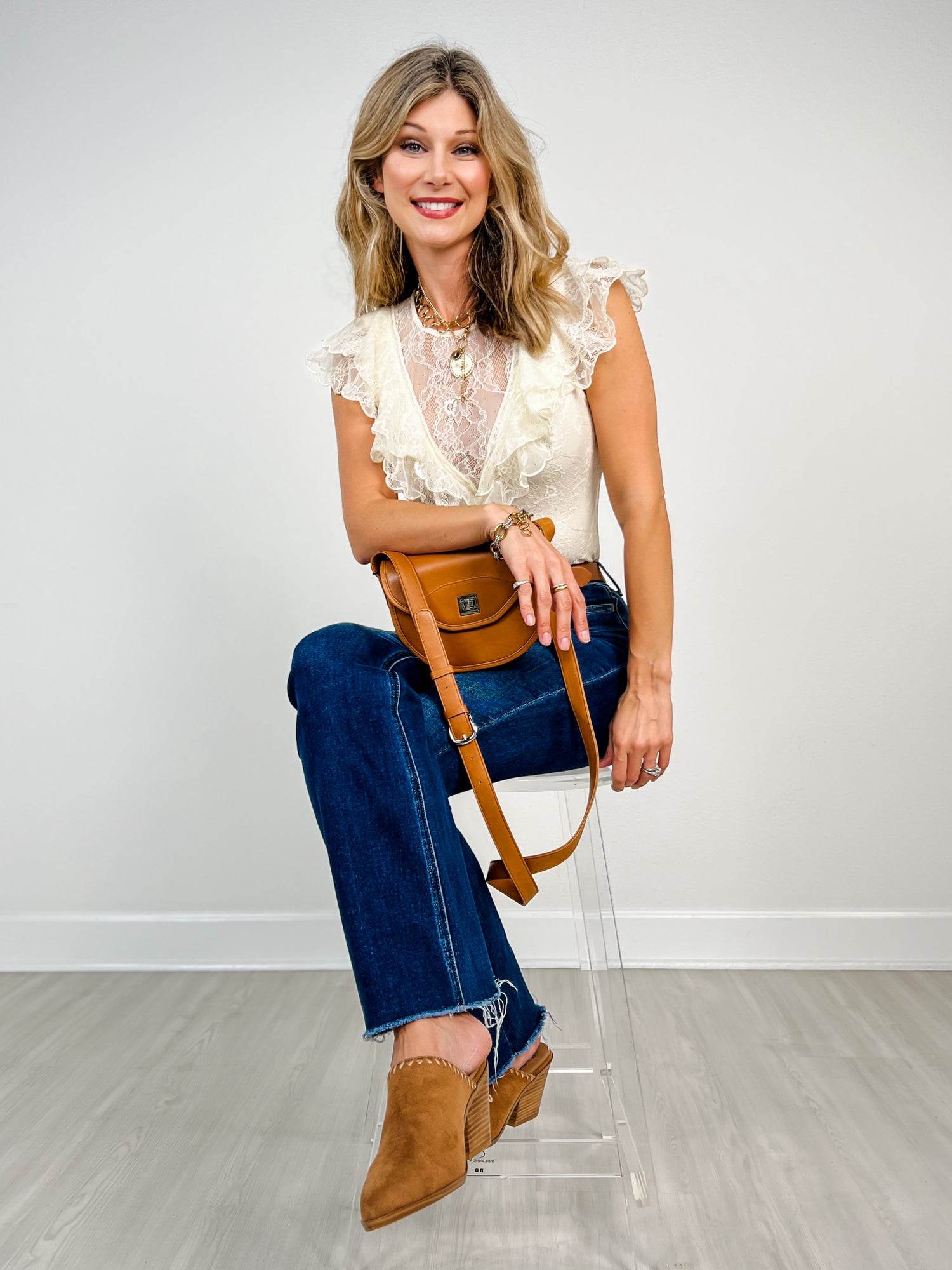 Flirty and fabulous, this V-cutout ruffle-lace bodysuit is your go-to for turning heads. The delicate lace hugs your curves while the playful ruffles add movement and dimension. The strategic V-cutout keeps things sultry without sacrificing comfort. Perfect for date night, dancing, or whenever you want to feel confident and gorgeous. Layer it under sheer pieces or wear it solo—either way, you'll look absolutely stunning.