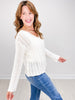 V-Neck Crochet Knit V-Neck Boxy Sweater Top