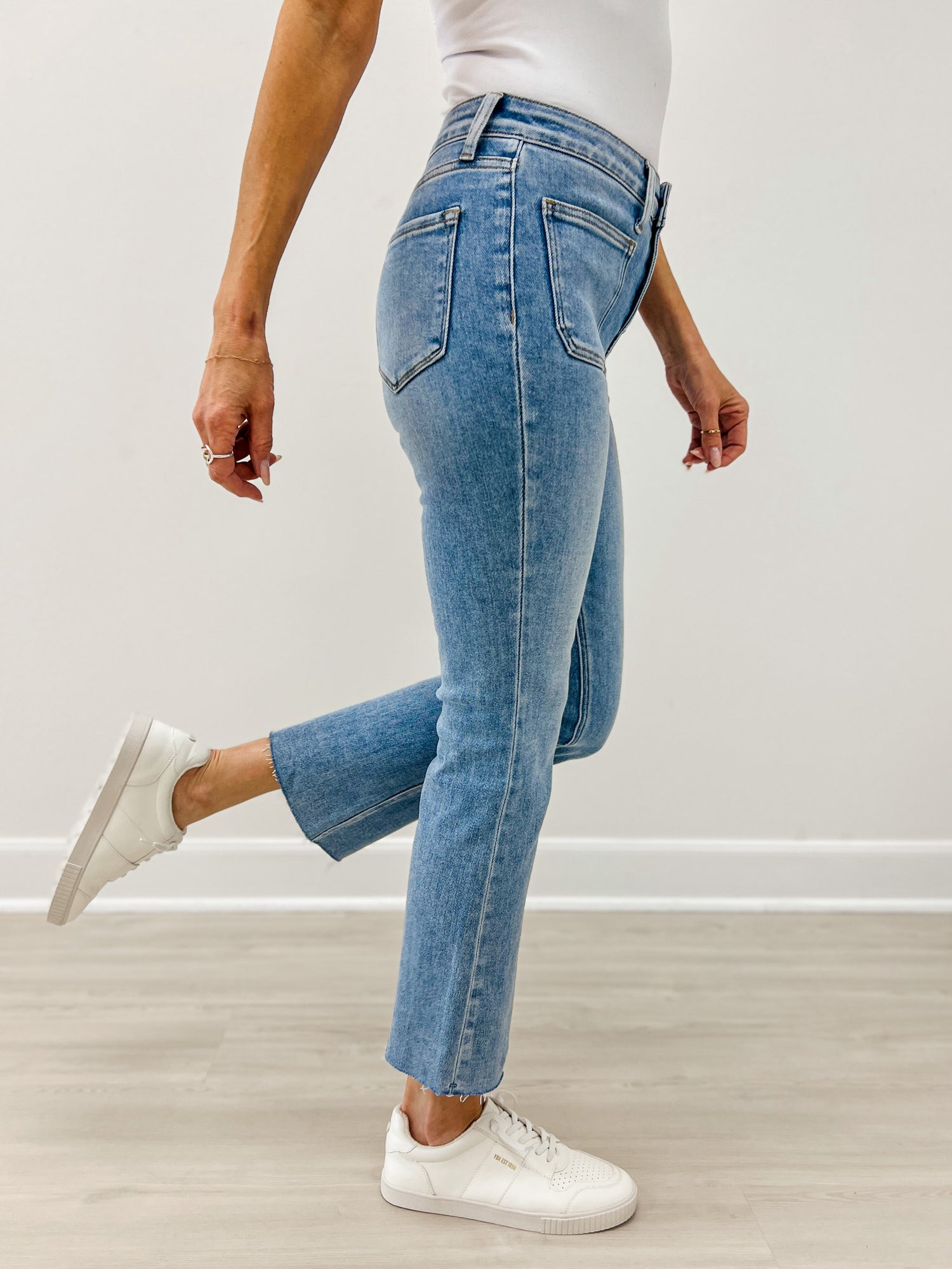 Bring back effortless ’90s style with the Vervet Throwback High-Rise Patch Pocket Kick Flare Jeans. Designed with a flattering high rise and statement front patch pockets, these jeans feature a classic kick-flare silhouette that adds just the right amount of retro charm. Easy to dress up or down, they’re the perfect blend of throwback style and modern comfort—made for everyday wear with a vintage-inspired edge.