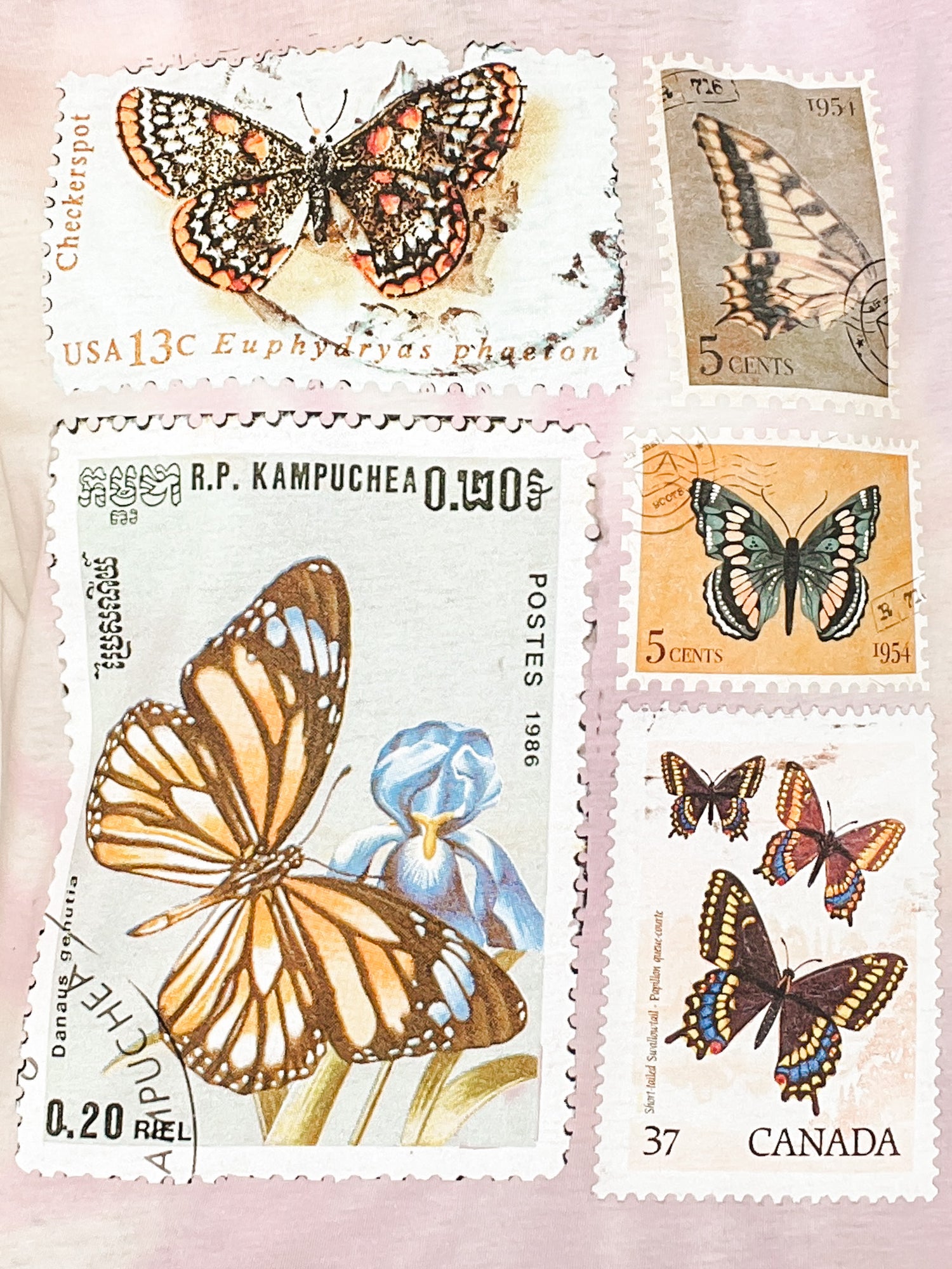 Each printed stamp showcases colorful butterflies in nostalgic detail, adding a touch of wanderlust and whimsy to your wardrobe.