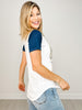 A sporty staple with a feminine edge. The Women's CVC Varsity V-Neck is made from a buttery-soft blend of 52% cotton and 48% polyester (30 singles, 4.3 oz), giving you the perfect balance of comfort and durability. Featuring contrast color blocking for a throwback varsity vibe, this tee is designed with a flattering retail fit, side seams for structure, and a clean-finished high-low curved hem for a stylish silhouette. The tear-away label keeps things itch-free and effortless.