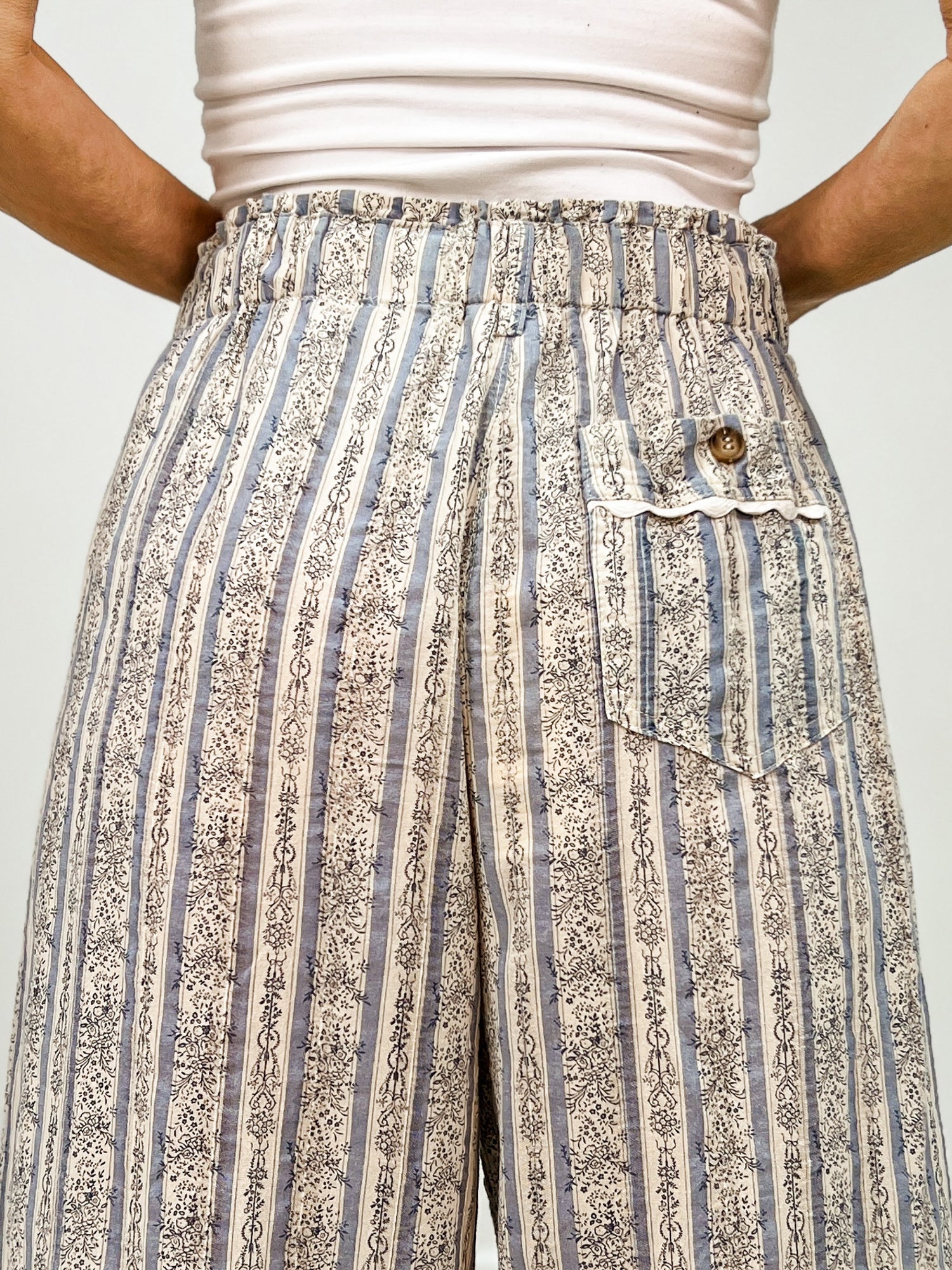 Step into retro vibes with these vintage-inspired wide-leg pants featuring a bold striped print that's equal parts nostalgic and fashion-forward. The relaxed, flowing silhouette offers all-day comfort while the timeless pattern works with everything in your closet. Perfect for channeling that effortless '70s energy or mixing into modern outfits for an unexpected twist. Dress them up with heels or keep it casual with sneakers—these pants are your new wardrobe MVP.
