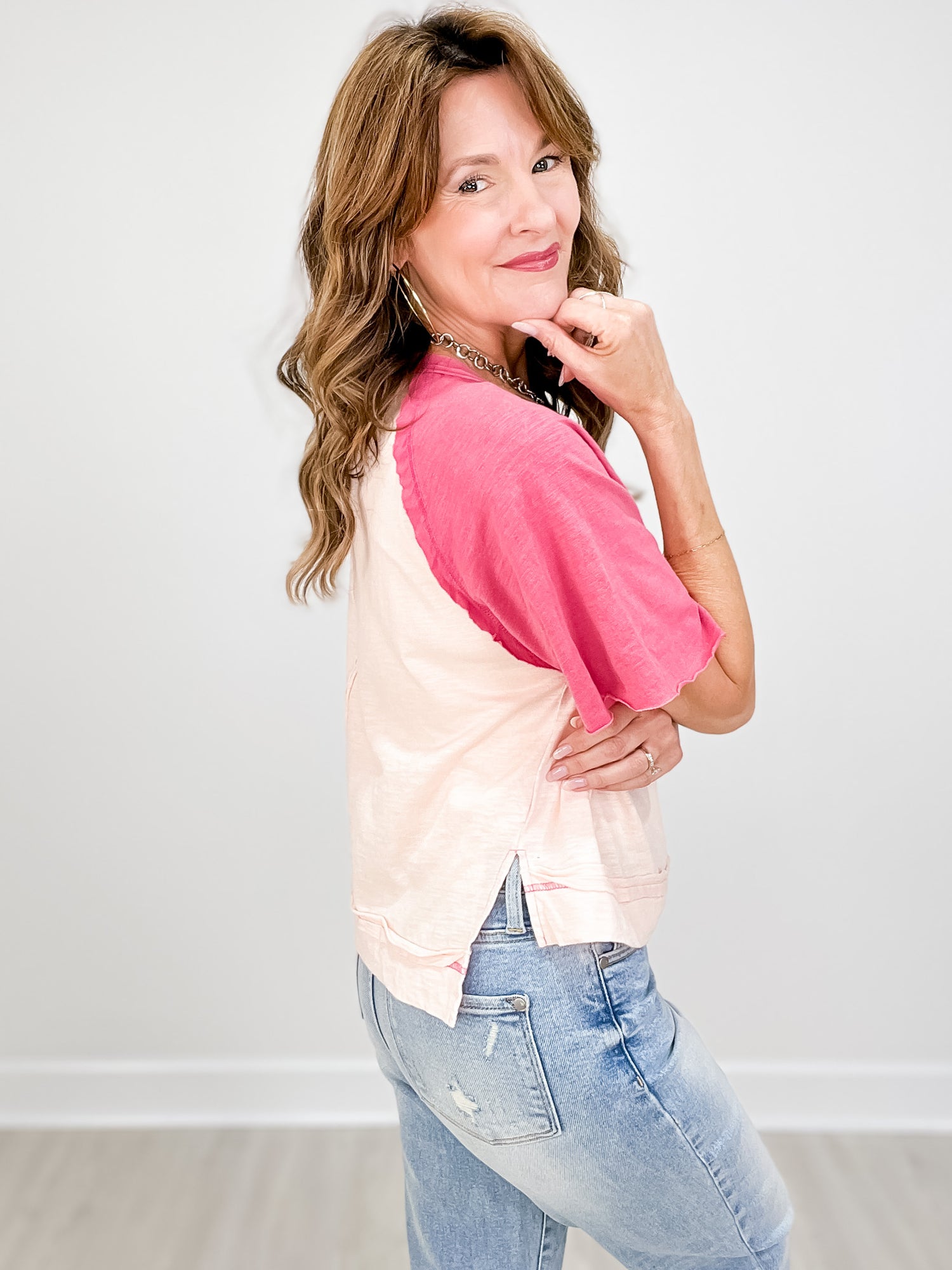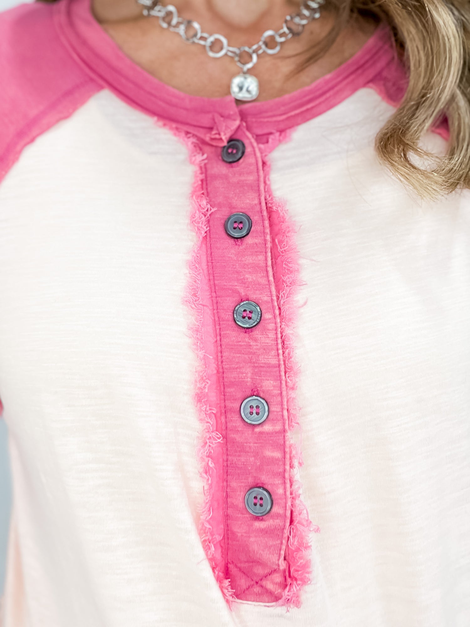 WASHED CONTRAST HENLEY NECK SHORT SLEEVE TEE